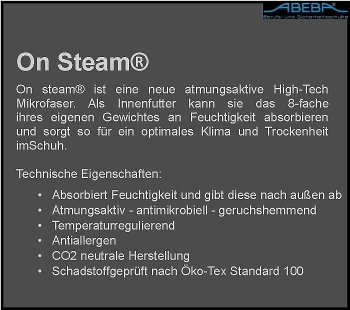 - "On-Steam" Innenfutter aus einer atmungsaktiven High-Tech Faser.