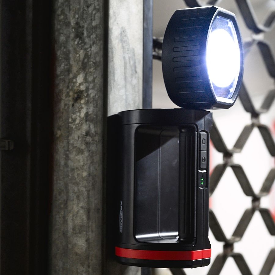Der Handscheinwerfer HS5R ist ein robuster und zuverlässiger Akku-Handscheinwerfer für unterschiedlichste Einsatzbereiche, egal ob Industrie oder Gewerbe, Jagd oder Sicherheitsdienste. Die professionelle Arbeitslampe sorgt immer für ausreichend Helligkeit. Durch die Blink-Funktion mit beiliegender orangener Farbfilterscheibe eignet sich der Scheinwerfer auch ideal als Warnleuchte für den Straßenverkehr, da er Lampenkopf um 90° kippbar ist und die Leuchte aufgestellt werden kann. Das robuste Gehäuse aus ABS-Kunststoff ist auch für den Gebrauch mit Arbeitshandschuhen bestimmt. Durch einen starken Haltemagnet an der Unterseite des Gehäuses lässt sich die Lampe einfach und schnell auf metallischen Oberflächen fixieren bzw. in Verbindung mit der Lade-/Montageschale einfach aufladen.