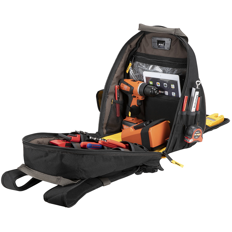 CLC-Werkzeugrucksäcke sind exquisit gestaltete, technologiegetriebene, robuste Werkzeugtaschen für professionelle Bauunternehmer, Techniker und Handwerker. Die gepolsterten Schultergurte und die Rückwand bieten eine bequeme und freihändige Möglichkeit, Ihre Werkzeuge zu transportieren. Mit intelligent konstruierten Schichten aus strapazierfähigen Stoffen. Einige CLC-Werkzeugrucksäcke bieten eine integrierte LED-Leuchte für Situationen mit schlechten Lichtverhältnissen und ein Netzteil für das Repowering von Telefonen, Tablets und anderen Geräten bei der Arbeit. Unser CLC Tech Gear ™ Doppelfach-Taschenrucksack mit LED-Beleuchtung und 53 Taschen verfügt über ein integriertes dreistufiges LED-Licht, das sich drehen lässt, 2 Gurte für Akku-Bohrer / Treiber und Batterieladegerät, Tragegriffe, verstellbare gepolsterte Schultergurte mit Brustgurt und Rückenpolsterung für Komfort .