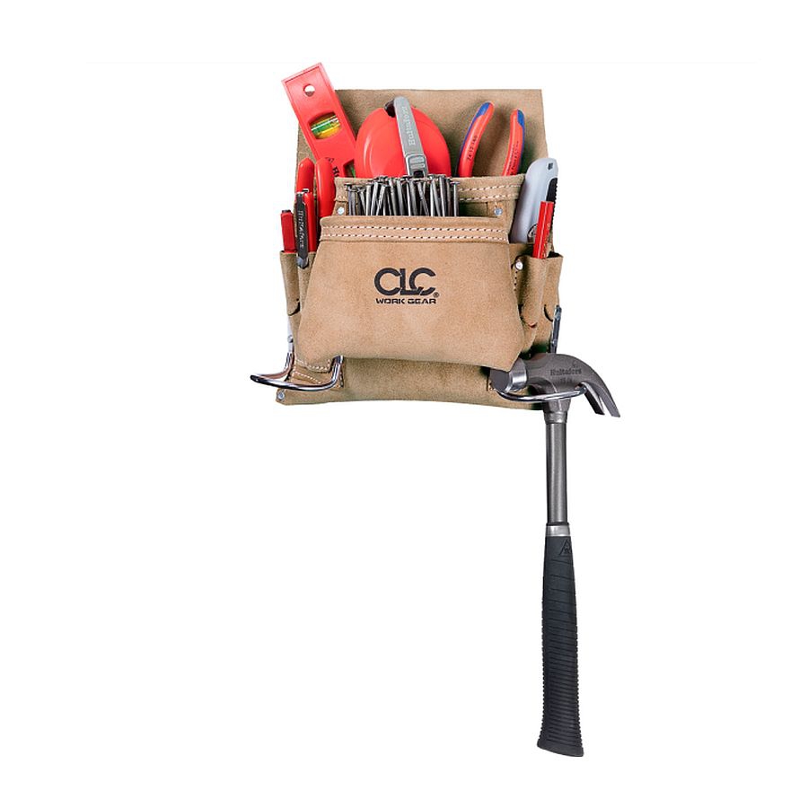 Die kleine Gürteltasche CL10I823X für Nägel und Werkzeug aus Leder von CLC besteht aus hochwertigstem Wildleder und eignet sich für eine Vielzahl an Nägeln, Halterungen und anderem Werkzeug. Neben zwei Hauptfächern bietet sie sechs kleinere Fächer sowie zwei Hammerbügel aus Stahl.
