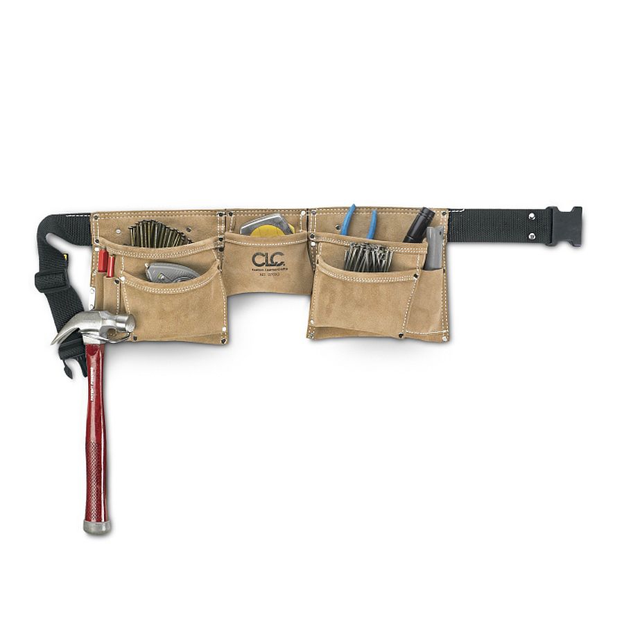 Diese strapazierfähige Einsteiger-Werkzeugschürze CL1I370X3 aus Wildleder hat einen 50 mm breiten Gürtel mit Schnellverschluss, 4 Haupttaschen sowie 4 kleinere Einstecktaschen und Einsteckfächer.
