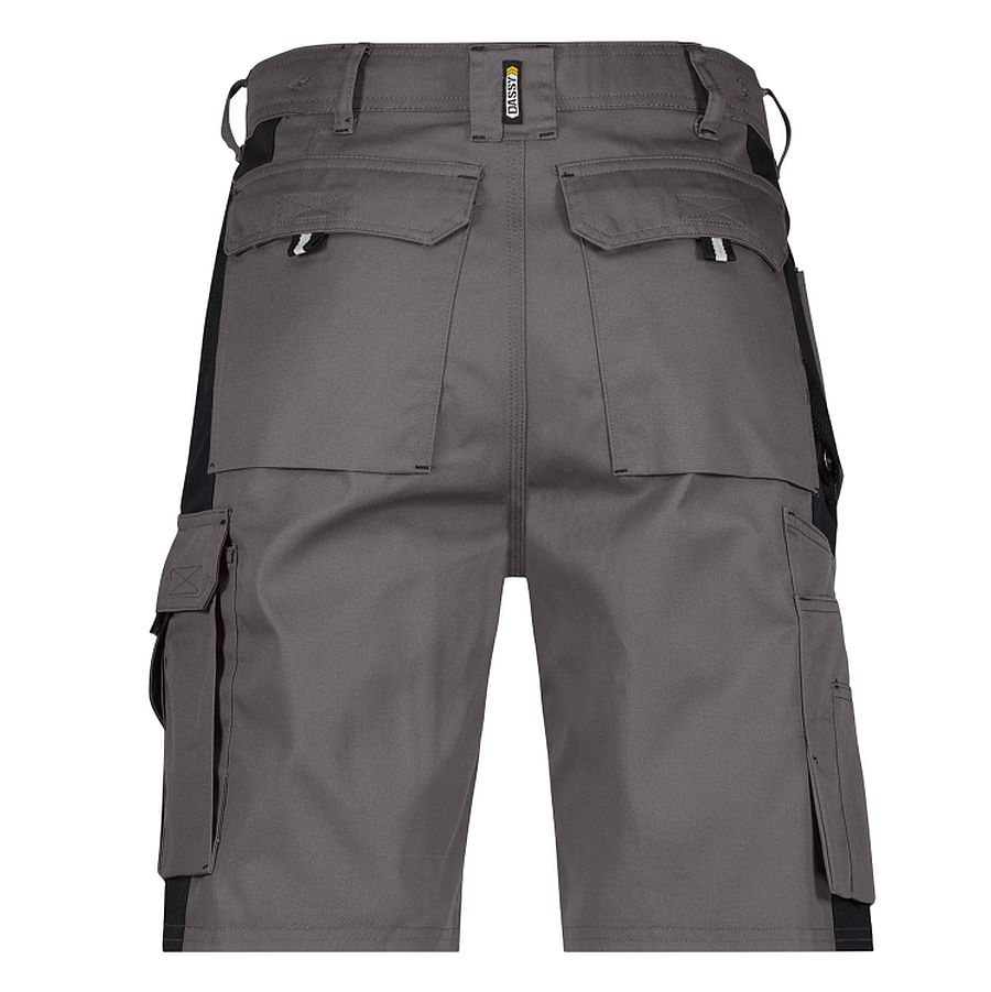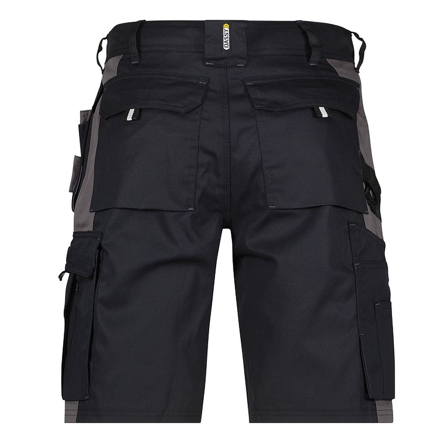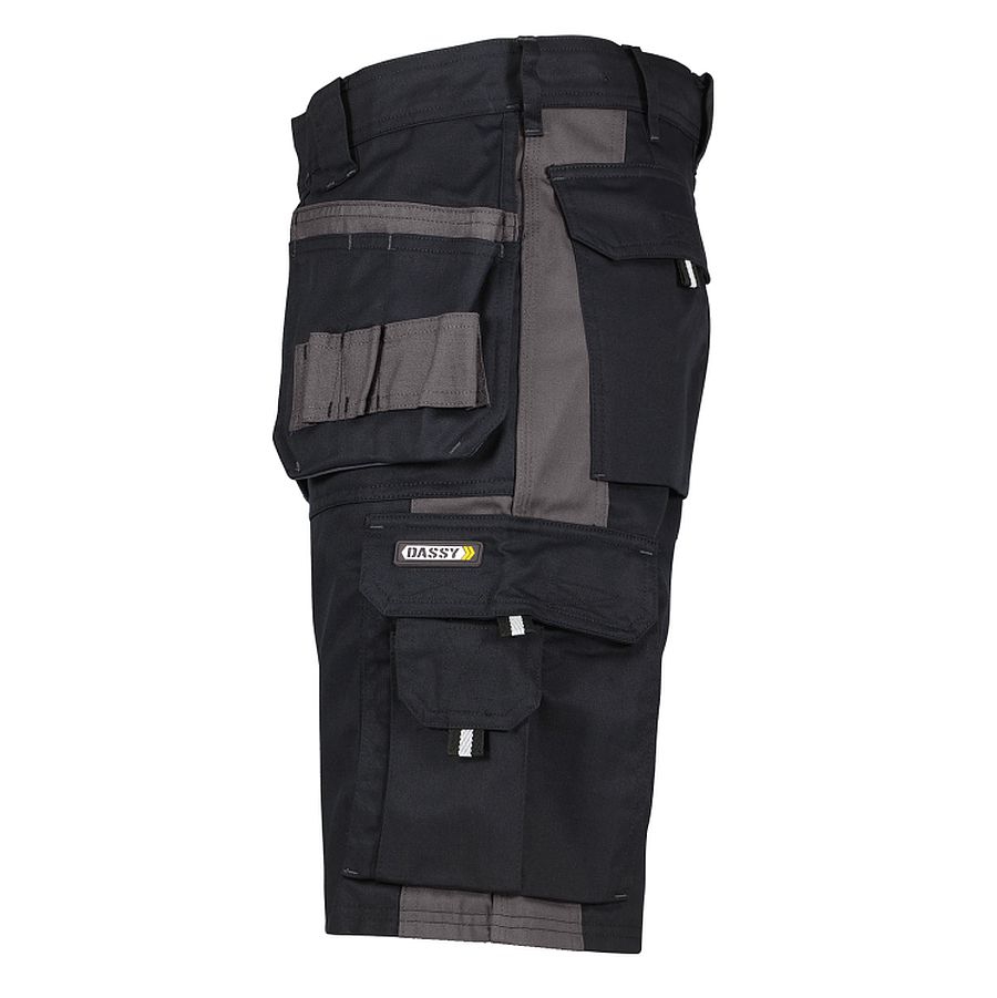 Zweifarbige Arbeitsshort von DASSY Workwear aus strapazierfähigem Mischgewebe. Ausgestattet mit Cargotasche und Gesäßtaschen. 3-fache Kappnähte sorgen für lange Haltbarkeit.