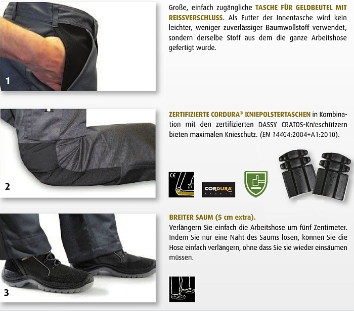 Material Eigenschaften DASSY Workwear Arbeitshose Boston: