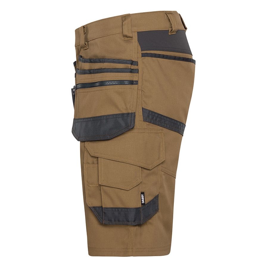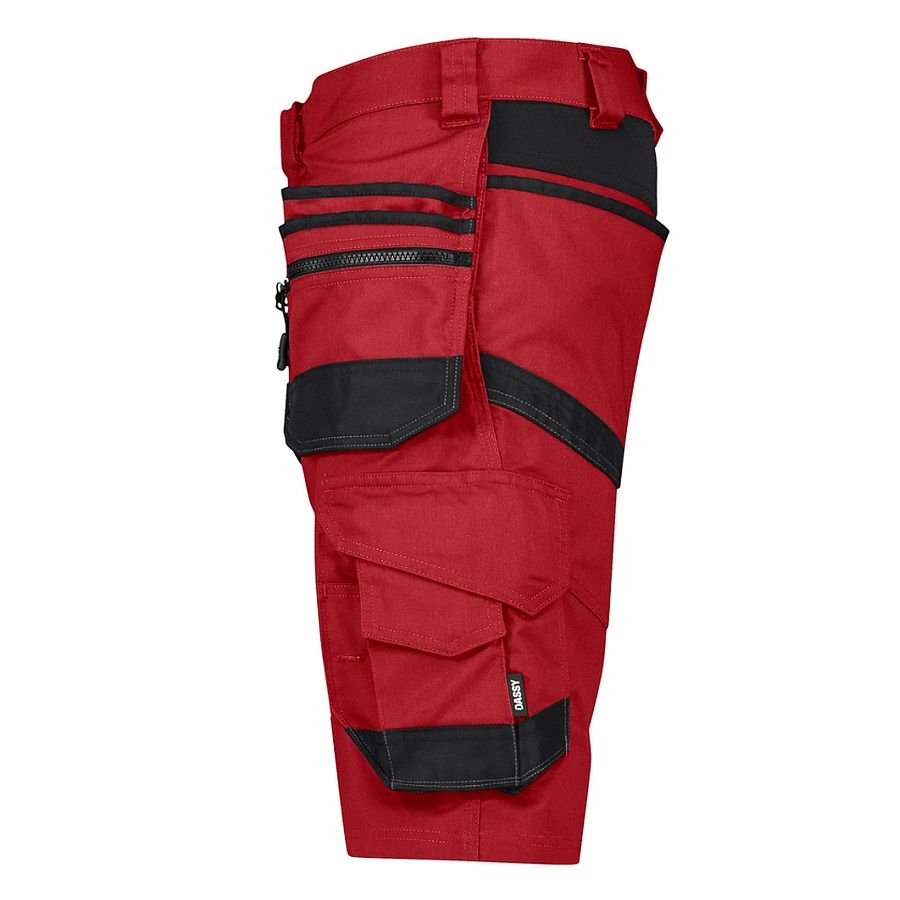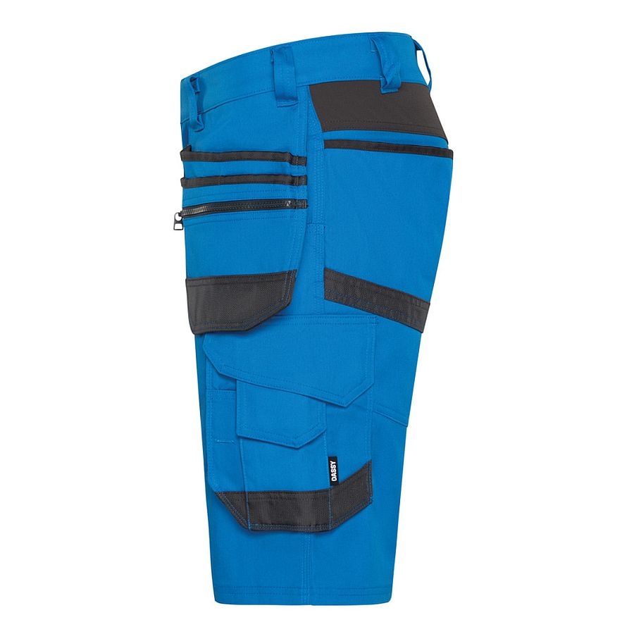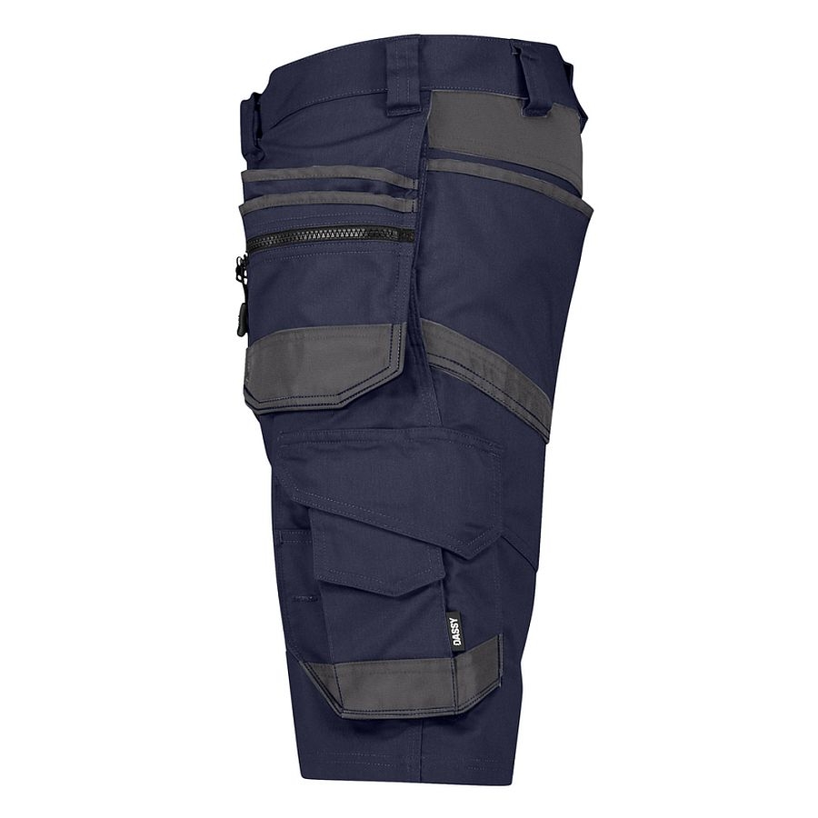 Die DASSY® Trix Next (Hersteller Nr. 250114) ist eine vielseitige Stretch‑Arbeitsshorts mit Holstertaschen, perfekt für Handwerk, Bau, Montage oder professionelles Arbeiten bei warmen Temperaturen. Teil der DASSY® D‑FX Flex Next‑Kollektion, kombiniert sie funktionale Performance, ergonomischen Komfort und nachhaltige Materialien – ideal für Profis, die viel Bewegungsfreiheit und praxisgerechte Details brauchen. Das hochwertige Stretch‑Material sorgt für flexible Bewegungen genau dort, wo sie gebraucht werden, ohne an Robustheit zu verlieren. Zahlreiche praktisch angeordnete Taschen mit Cordura®‑Verstärkung bieten Platz für Werkzeug, Zollstock, Cutter, Smartphone und mehr – alles griffbereit und sicher verstaut. Mit einem nachhaltigen Materialmix aus recyceltem Polyester und Baumwolle, geprüft nach OEKO‑TEX® Standard 100 und unterstützt durch Global Recycled Standard (GRS)‑Anteil, verbindet die Shorts Funktionalität mit ökologischer Verantwortung.