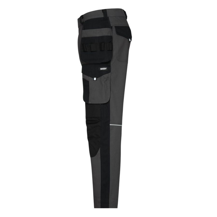 Wenn im Arbeitsalltag jede Bewegung sitzt, braucht es eine Hose, die mitzieht – ohne Kompromisse bei Stauraum, Schutz und Tragekomfort. Genau dafür steht die DASSY® Rossi Arbeitshose (Artikelnummer 201170). Als Hersteller liefert DASSY® mit der DASSY® Rossi 201170 eine moderne Arbeitshose mit Holstertaschen (Nageltaschen) und Kniepolstertaschen, die den bewährten Komfort der DASSY®-Workwear-Linie aufgreift und gleichzeitig spürbar optimiert. Das Highlight der DASSY® Rossi (201170) sind die neu gestalteten Holstertaschen, die strategisch an den Hüften platziert sind. Dadurch kannst du dich bequem hinsetzen, ohne dass Taschen oder Werkzeug stören – ein echter Vorteil im Montage-, Bau- oder Handwerksalltag. Damit deine Umgebung geschützt bleibt, sind Knopf und Reißverschluss verdeckt – so werden Kratzer auf empfindlichen Oberflächen zuverlässig vermieden. Auch beim Thema Kniekomfort ist die DASSY® Rossi Arbeitshose 201170 konsequent durchdacht: Die verstellbaren, oben öffnenden Cordura®-Kniepolstertaschen sind extrem strapazierfähig und praxisnah im Handling – ideal, wenn du regelmäßig kniest oder Knieprotektoren schnell einsetzen möchtest. In Kombination mit DASSY® Fides Knieschützern erfüllt die Hose zudem die Norm EN 14404-3:2024 für Knieschutzlösungen (Kniepolstertaschen + Knieschützer). Neben Funktion punktet die DASSY® Rossi 201170 auch mit einem modernen, schlanken Look: Regular Fit mit Slim Leg sorgt für eine zeitgemäße Silhouette, ohne die Bewegungsfreiheit einzuschränken. Möglich macht das der mechanische Stretch-Stoff. Gleichzeitig ist die Hose auf Langlebigkeit getrimmt: Cordura®-Details, durchdachte Taschenaufteilung (z. B. Zollstock-, Cutter-, Werkzeug- und Handytasche) und reflektierende Details machen sie zu einem zuverlässigen Partner – auch bei wechselnden Bedingungen. in weiterer Pluspunkt für Betriebe und Teams: Die DASSY® Rossi Arbeitshose (201170) ist industriell waschbar und zum Bedrucken und Besticken geeignet – perfekt für ein einheitliches, professionelles Firmenoutfit. Und wer nachhaltig einkauft, wird ebenfalls fündig: Das Material enthält recyceltes Polyester und ist nach Global Recycled Standard (GRS) zertifiziert (Hauptstoff enthält mindestens 50% GRS-zertifiziertes Recyclingmaterial) – zusätzlich ist der Stoff OEKO-TEX® Standard 100 geprüft.