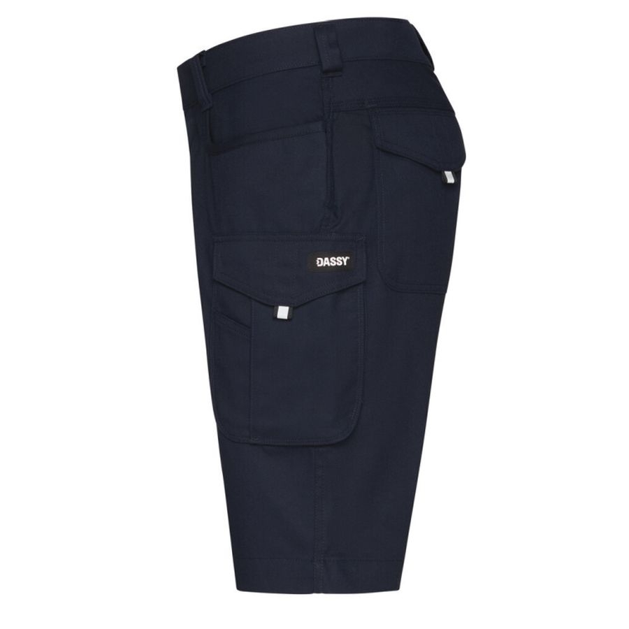 Wenn die Temperaturen steigen, brauchst du Workwear, die leicht, robust und praktisch ist – genau dafür sind die DASSY® Botta Arbeitsshorts 250116 gemacht. Diese Arbeitsshorts kombinieren einen professionellen Look mit durchdachter Ausstattung und einem Plus an Komfort: Dank mechanischem Stretch-Stoff bewegst du dich flexibel, während der erhöhte Rückenteil zusammen mit der verstellbaren Rückenelastik für einen sicheren Sitz sorgt – auch bei viel Bewegung, Knien oder Hocken. Besonders stark: Die DASSY® Botta (250116) setzt nicht nur auf Funktion, sondern auch auf Nachhaltigkeit. Das Material besteht aus einem Gewebe mit recyceltem Polyester und enthält 20 % Post-Consumer-Polyester (aus wiederverwerteten Textilresten). Gleichzeitig bleibt die Shorts eine echte Arbeitshose: Mit zahlreichen, clever platzierten Taschen hast du Werkzeug, Handy und Zubehör jederzeit griffbereit – von Zollstocktasche über Werkzeugfach bis zur Cuttertasche. Für den professionellen Einsatz sorgt außerdem die industrielle Waschbarkeit – ideal für Handwerk, Industrie, Montage und Werkstatt. Auch im Detail zeigt sich Qualität: Der verdeckte Jeansknopf und Reißverschluss helfen, Kratzer auf empfindlichen Oberflächen zu vermeiden – praktisch z. B. bei Montagearbeiten oder im Innenausbau. Und wenn du etwas mehr Länge brauchst, liefert der auslassbare Saum zusätzliche Reserve (ca. 3 cm). Dazu kommen reflektierende Details für bessere Sichtbarkeit und eine Verarbeitung, die sich hervorragend zum Bedrucken oder Besticken eignet – perfekt für Firmenausstattung. Mit den DASSY® Botta Arbeitsshorts bekommst du eine moderne, strapazierfähige und nachhaltigere Arbeitsshorts, die sich in jeder professionellen Umgebung bewährt.