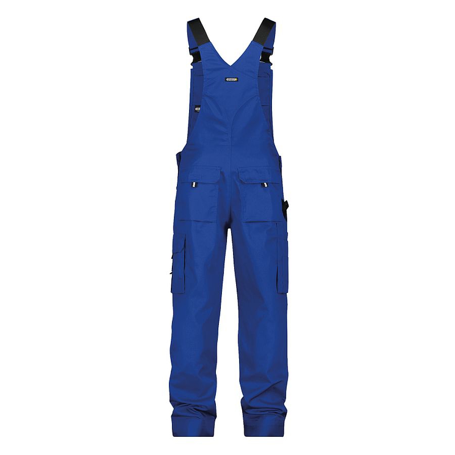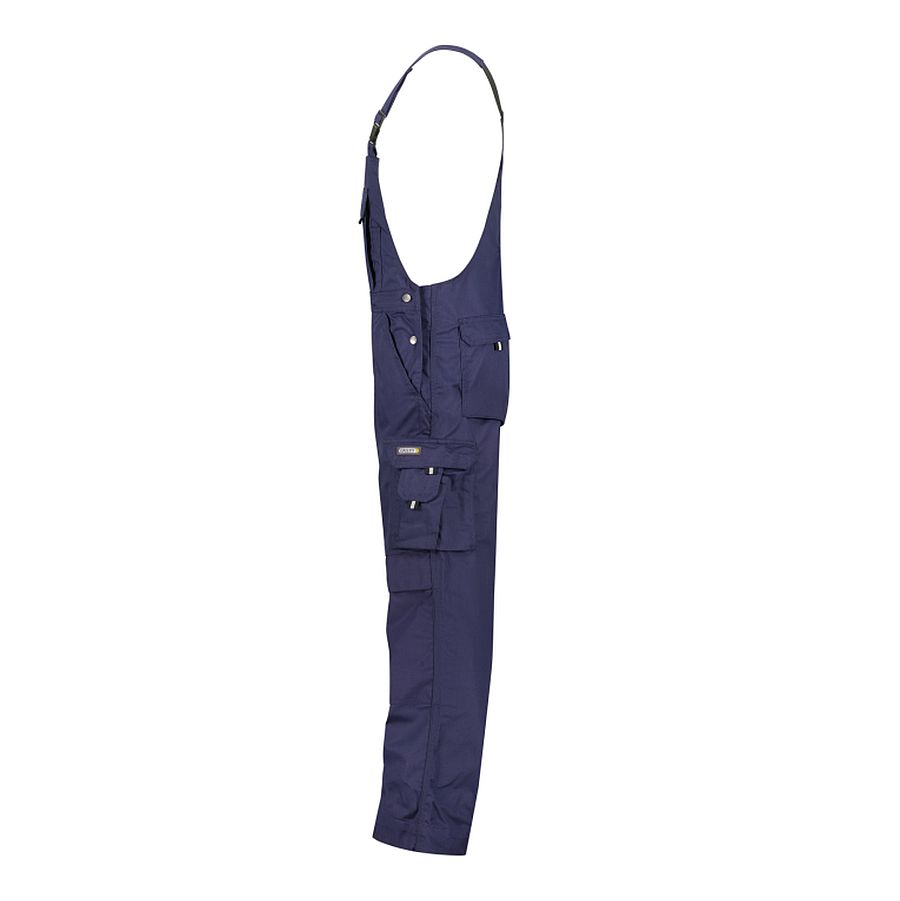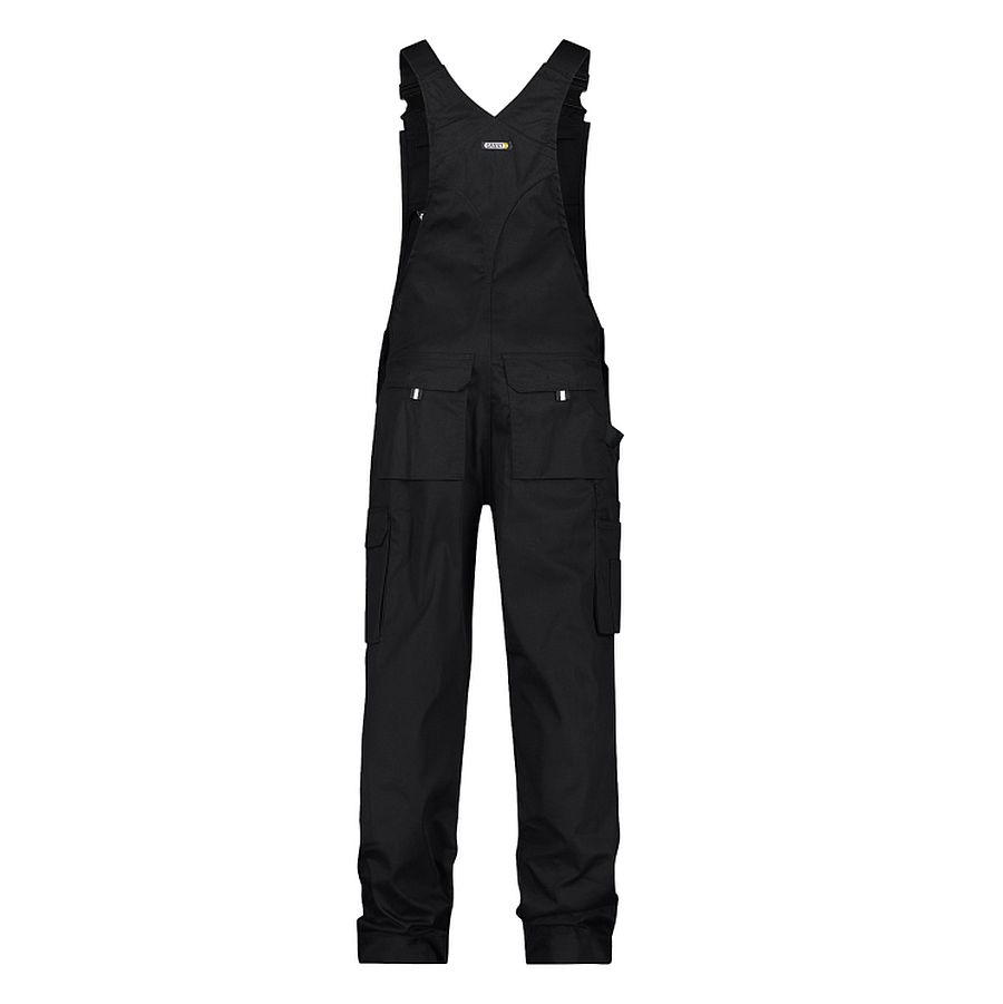 Stabile Latzhose von DASSY Workwear aus strapazierfähigem Mischgewebe. Ausgestattet mit Kniepolstertaschen aus Cordura®, Zollstocktasche, Cargotasche und Gesäßtaschen. 3-fache Kappnähte sorgen für extra lange Haltbarkeit.