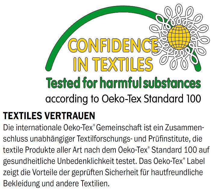 - Zertifiziert nach Öko-Tex Standart 100 - geprüft auf Schadstoffe
