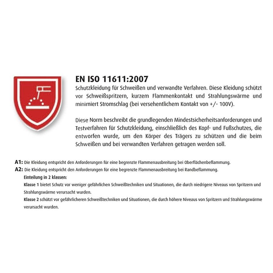 Zertifizierung: EN ISO 11612:2008 A1;A2;B1;C1;D0;E1;F1 | EN ISO 11611:2007 A1+A2 Klasse 1