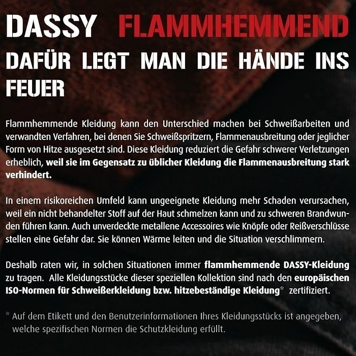 Produktinformationen "DASSY® Schweißerschutz Hose Arizona"