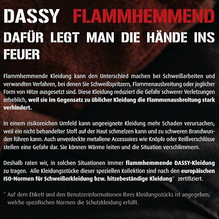 Material Eigenschaften DASSY Workwear Schweißer Latzhose Dakota: