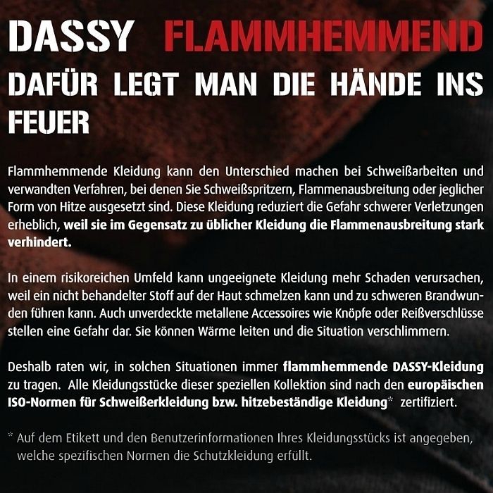 Material Eigenschaften DASSY Workwear Schweißer Overall Toronto: