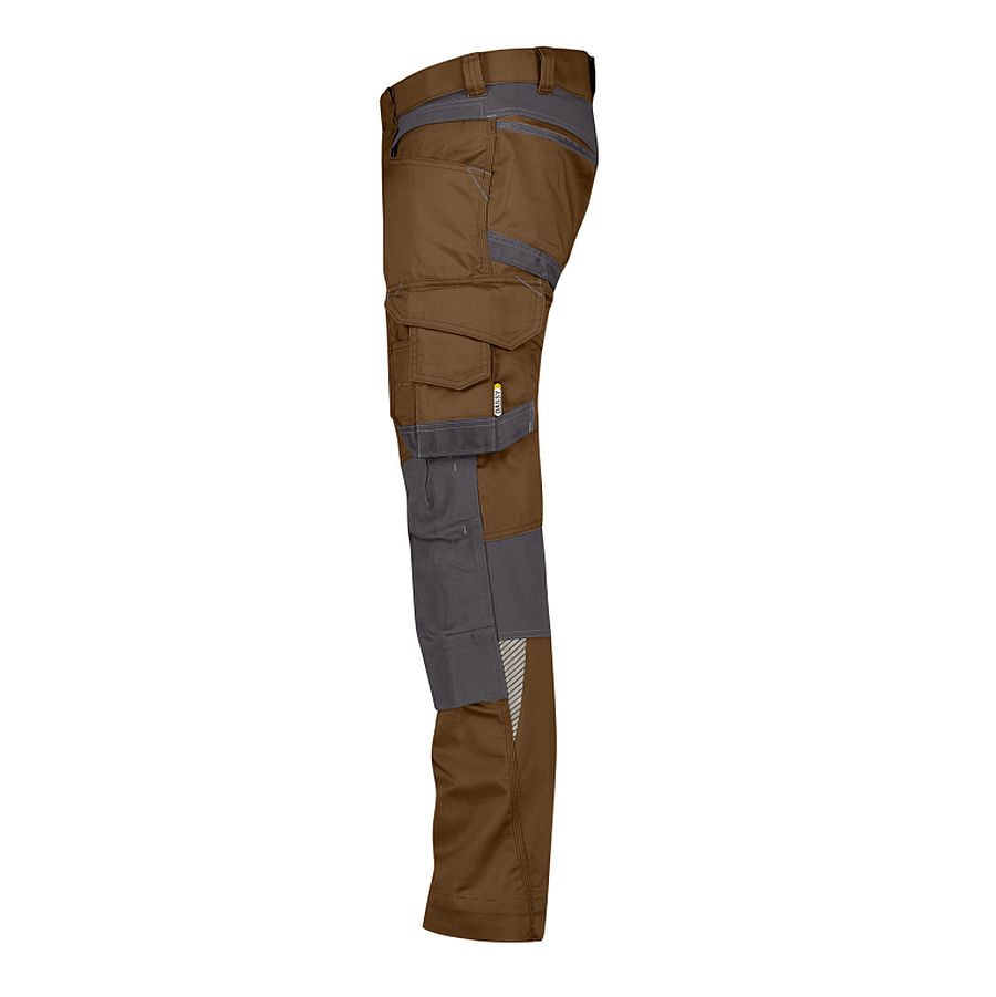 Dynamisch bei der Arbeit mit der DASSY® Arbeitshose DYNAX. Das moderne, praktische Design garantiert eine optimale Bewegungsfreiheit dank des dreifachen Stretches: 1. Hauptstoff mit mechanischem Stretch + 2. extrem strapazierfähige Cordura® Stretch-Kniepolstertaschen + 3. besonders flexible Stretch-Einsätze an Kniekehle, Schritt und hinten unter dem Bund.