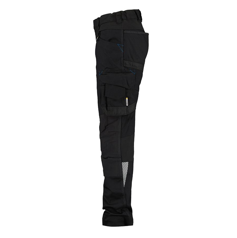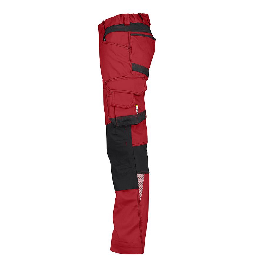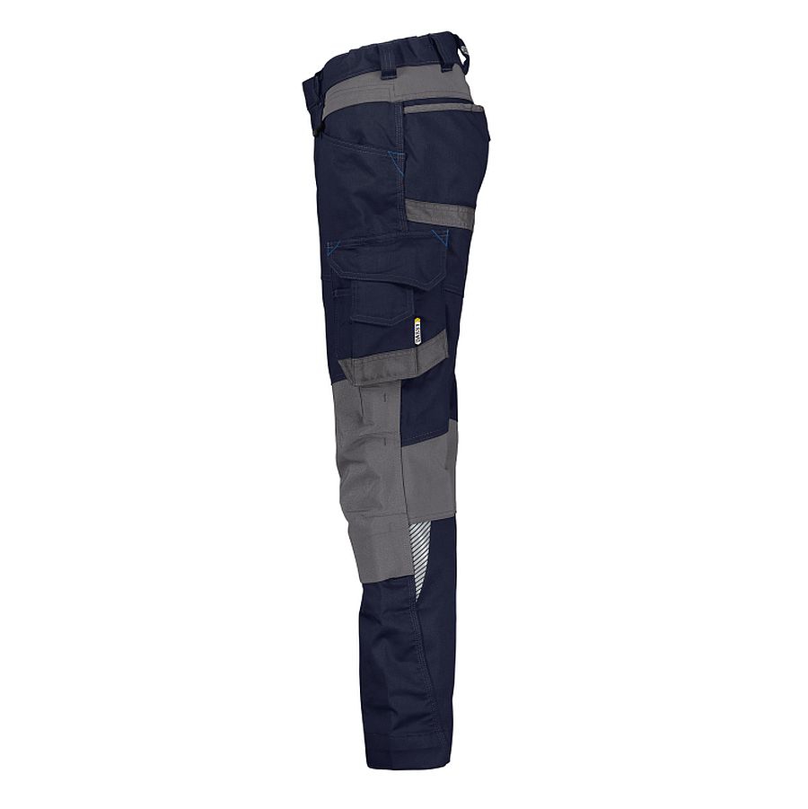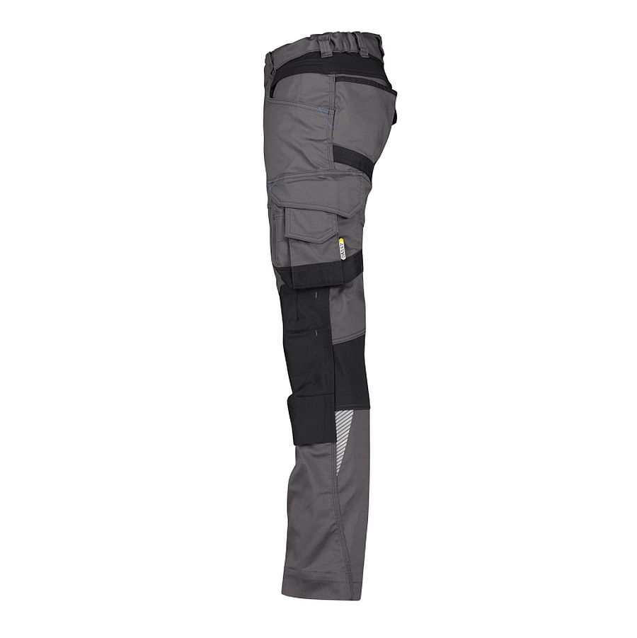 Dynamisch bei der Arbeit mit der DASSY® DYNAX WOMEN. Der figurbetonte, weibliche Schnitt sieht super aus und gewährleistet jederzeit einen hohen Komfort dank des vierfachen Stretches: 1. Hauptstoff mit mechanischem Stretch + 2. extrem strapazierfähige Cordura® Stretch-Kniepolstertaschen + 3. besonders flexible Stretch-Einsätze an Kniekehle, Schritt und hinten unter dem Bund + 4. Seitenelastik im Bund.