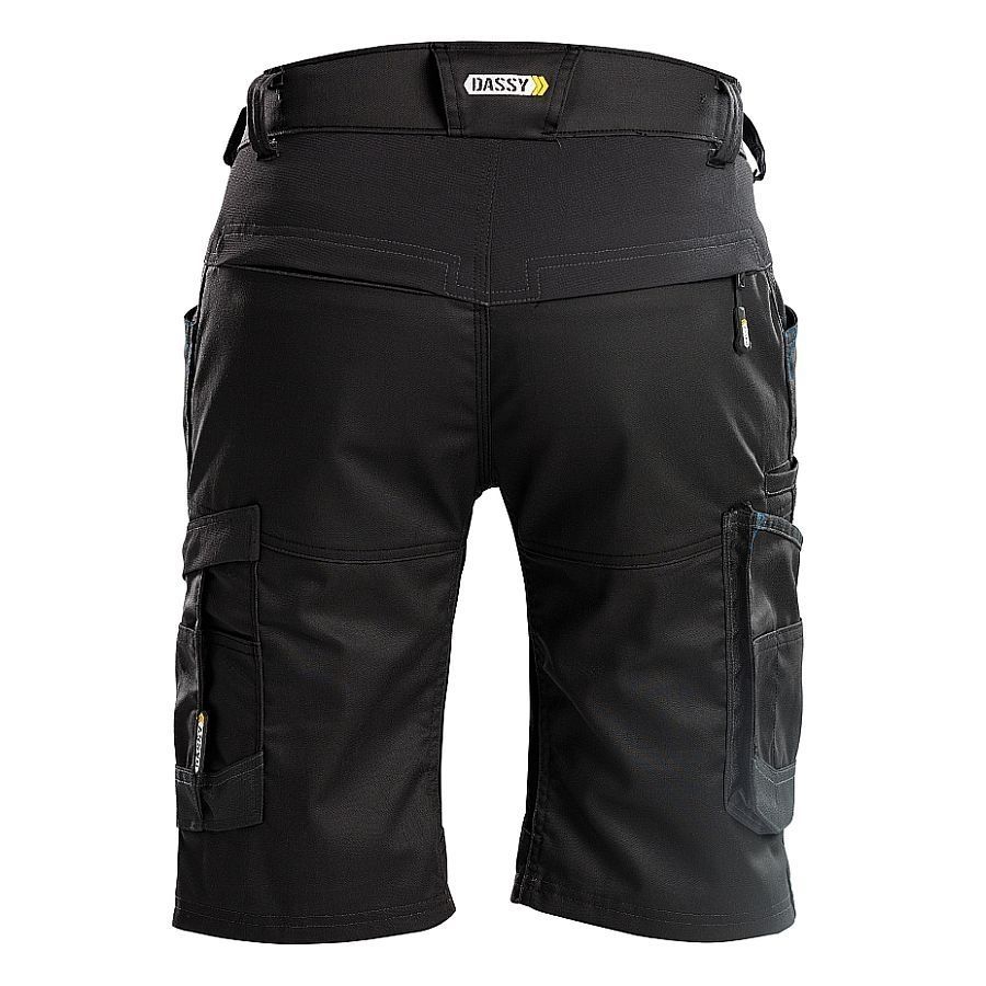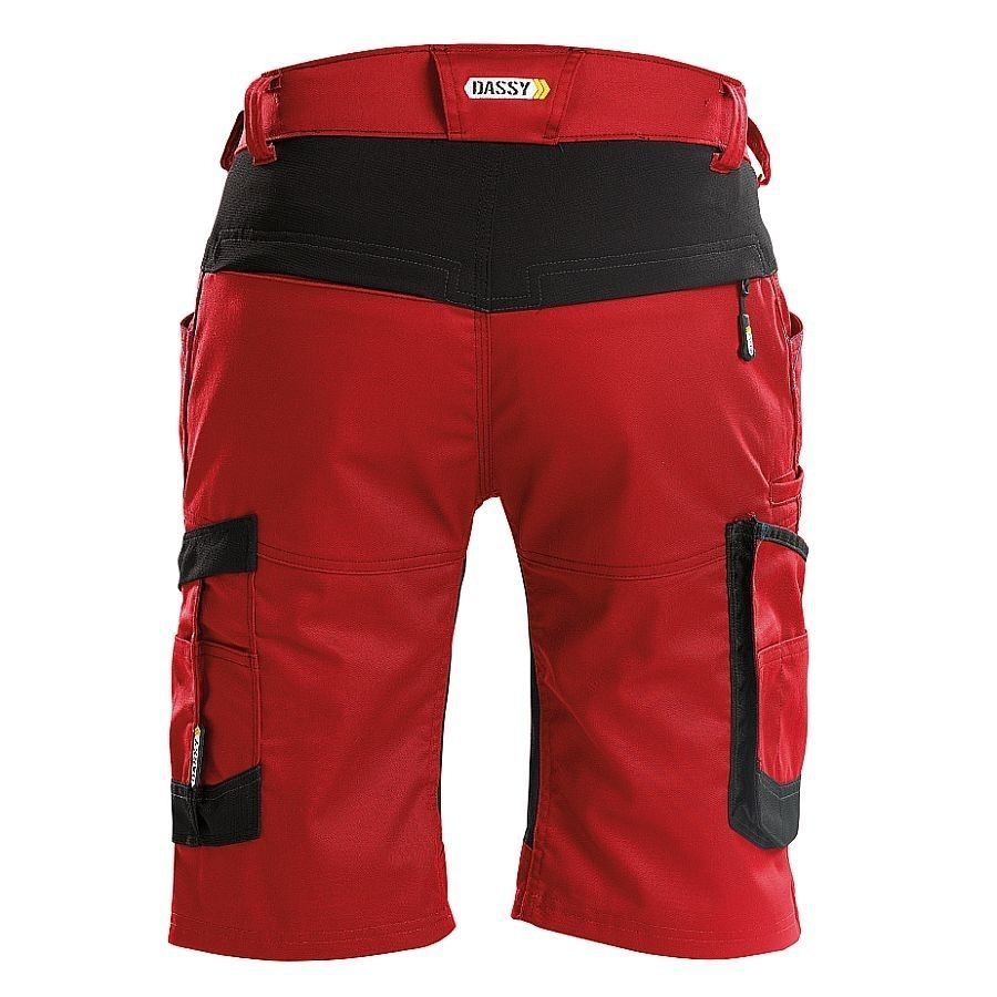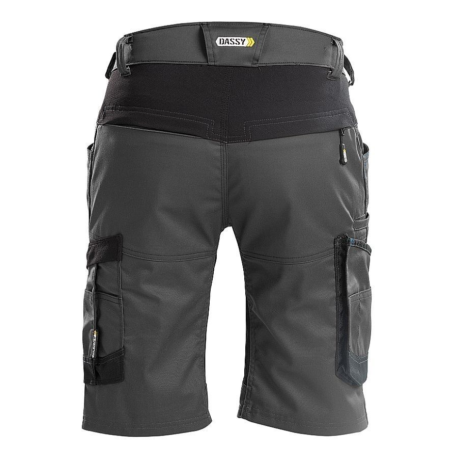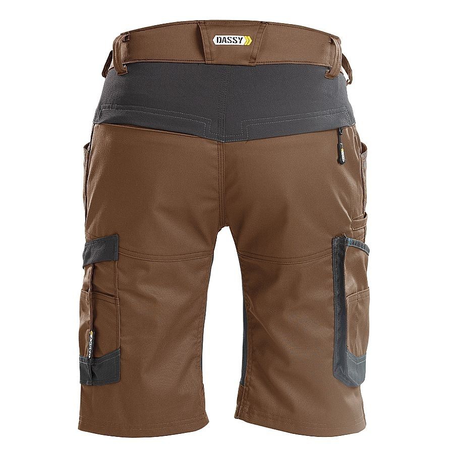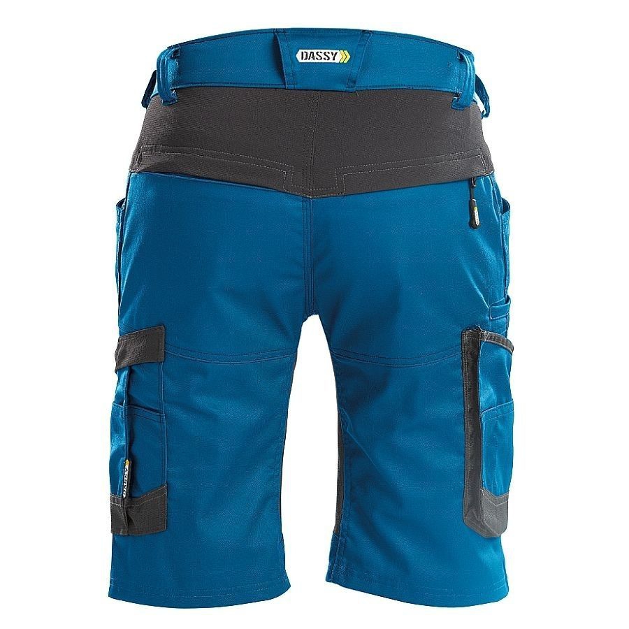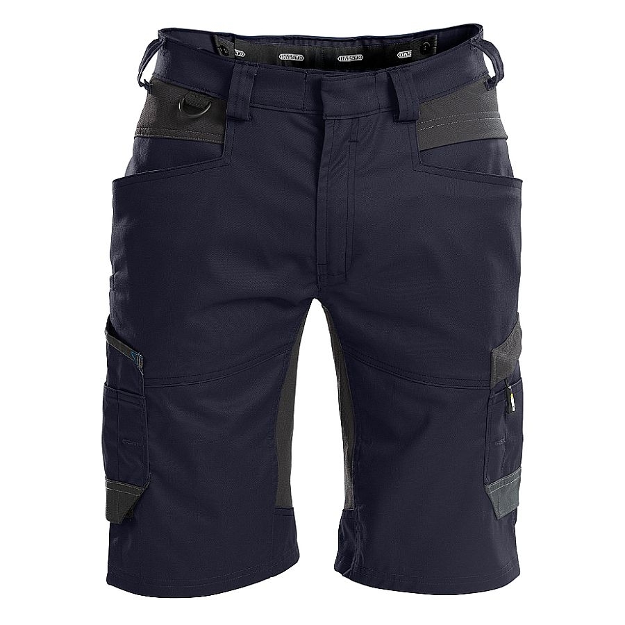 Die DASSY® Axis Stretch-Arbeitsshorts sind ein unverzichtbares Kleidungsstück für Profis in Handwerk, Industrie und Bauwesen, besonders an warmen Arbeitstagen. Gefertigt aus einer widerstandsfähigen Mischung aus 65% Polyester und 35% Baumwolle, gewährleisten diese Shorts mit einem Gewicht von etwa 245 g/m² Langlebigkeit und Komfort. Die besonderen Stretch-Einsätze aus 88% Polyamid und 12% Elasthan sorgen für außergewöhnliche Flexibilität und Bewegungsfreiheit, insbesondere im Schritt und am Bund. Hinsichtlich der Funktionalität bieten die Shorts umfangreichen Stauraum mit zwei Schubtaschen, sowohl offenen als auch verschließbaren Gesäßtaschen, zwei Schenkeltaschen sowie speziellen Stifte- und Zollstocktaschen und einer Cuttertasche. Der tiefer geschnittene Bund und die verstellbare Rückenelastik tragen zu einer ergonomischen Passform und zusätzlichem Komfort bei. Die Qualität und Sicherheit dieser Arbeitsshorts sind durch die OEKO-TEX® Standard 100 Zertifizierung gesichert, und die verstärkten Nylon Cordura®-Bereiche erhöhen ihre Haltbarkeit. Die Pflege dieser Arbeitsshorts ist unkompliziert, da sie bei bis zu 60°C gewaschen werden können, allerdings sind Bleichen, chemische Reinigung und Bügeln bei hohen Temperaturen zu vermeiden.