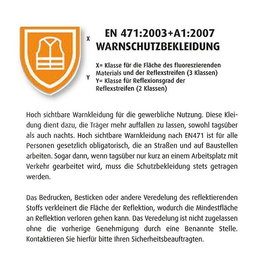 - Zertifiziert nach EN471:2003+A1:2007 - Klasse 1