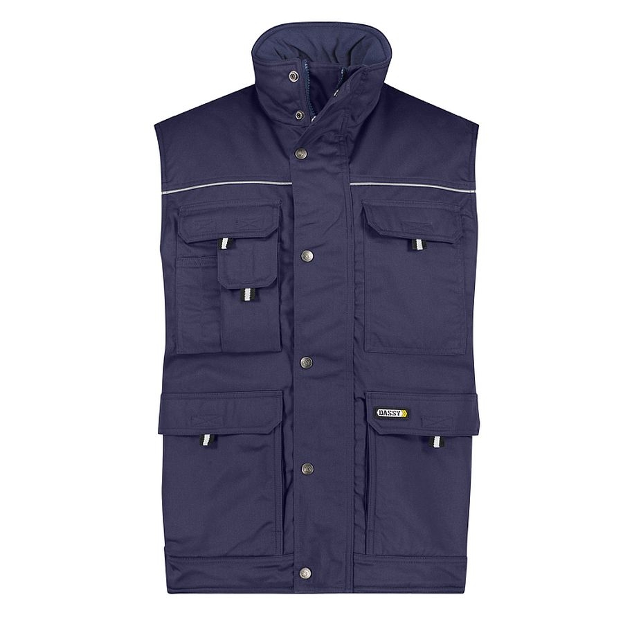 Einfarbige Winterweste von DASSY Workwear mit wärmendem Fleecefutter. Eine Vielzahl an praktischen Taschen sorgt für maximalen Arbeitskomfort bei bester Bewegungsfreiheit.
