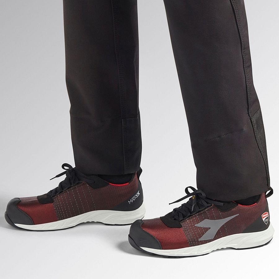 Der Diadora Utility FLY MOTOR MATRYX LOW S1PL (Artikelnummer: 701.181222_C2461) ist ein moderner, niedriger Sicherheitsschuh, der Funktionalität und innovatives Design vereint. Dank der speziellen Matryx-Technologie, einem atmungsaktiven und abriebfesten Mehrfasergewebe, bietet dieser Schuh höchsten Tragekomfort und Langlebigkeit. Die Carbonfaser-Zehenschutzkappe (200J) sorgt für maximale Sicherheit, während die ultraleichte K SOLE ECO-Zwischensohle zuverlässigen Durchtrittschutz bietet. Die Kombination aus einer EVA-Zwischensohle mit TPU-Schutzfilm und der hochwertigen Vibram Litebase-Gummisohle gewährleistet eine hervorragende Rutschfestigkeit (SR) sowie Beständigkeit gegen hohe Temperaturen (HRO). Für zusätzliche Ergonomie und Komfort verfügt der Schuh über ein antistatisches, herausnehmbares Fußbett aus recyceltem PU-Schaum mit Aktivkohle für optimierte Atmungsaktivität. Zudem ist der FLY MOTOR MATRYX LOW S1PL ESD-zertifiziert und komplett metallfrei, wodurch er sich ideal für verschiedenste Arbeitsumgebungen eignet. Ob in der Industrie, Werkstatt, Logistik oder im Handwerk – dieser Sicherheitsschuh kombiniert Schutz, Komfort und modernes Design mit der exklusiven DUCATI CORSE-Personalisierung.