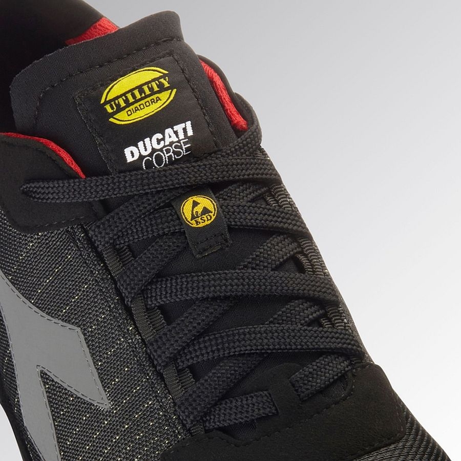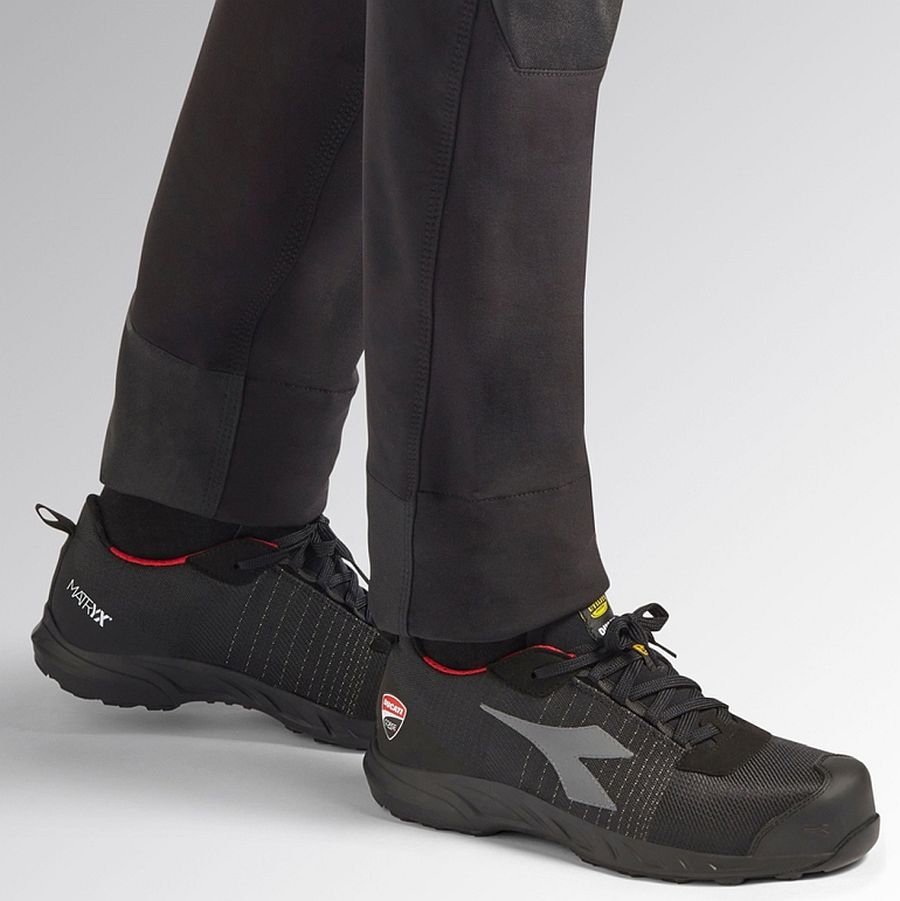 Der Diadora Utility FLY MOTOR MATRYX LOW S3L ist die ideale Wahl für Profis, die höchste Sicherheit, Komfort und innovatives Design in einem Sicherheitsschuh vereinen möchten. Dieser wasserabweisende, atmungsaktive und abriebfeste S3L-Sicherheitsschuh ist mit modernster Technologie ausgestattet und für anspruchsvolle Arbeitsumgebungen konzipiert. Dank der exklusiven DUCATI CORSE-Personalisierung verbindet er Funktionalität mit sportlicher Eleganz. Die Kombination aus Matryx Mehrfasergewebe und TPU-Zehenschutz sorgt für außergewöhnliche Strapazierfähigkeit und Flexibilität. Der Zehenbereich wird durch eine 200J Carbonfaser-Zehenkappe geschützt, während die ultraleichte K-Sole ECO Antiperforation-Einlage maximalen Schutz gegen Durchtritt bietet. Mit einer breiten Passform (Weite 11) und einem ergonomischen Fußbett aus recyceltem PU-Schaum mit Aktivkohle gewährleistet dieser Schuh höchsten Tragekomfort und verbesserte Hygiene. Die Vibram Litebase-Technologie sorgt für eine robuste und langlebige Sohle aus HRO FO SR Nitrilkautschuk, die hervorragende Rutschfestigkeit und Hitzebeständigkeit bietet. Die EVA-Zwischensohle mit TPU-Schutzfolie garantiert zusätzliche Dämpfung und Stabilität. Dank der ESD-Ausstattung ist dieser Schuh auch für elektrosensible Arbeitsbereiche geeignet.