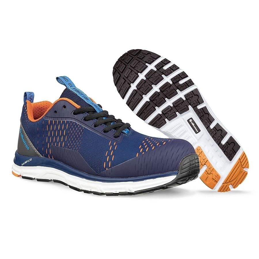 Der LEVITATE ORANGE LOW (647230) ist ein innovativer Sicherheitsschuh, der sowohl durch seine Funktionalität als auch durch sein modernes Design besticht. Dieser Schuh gehört zur neuesten Generation der Sicherheits- und Arbeitsschuhe, die speziell entwickelt wurden, um Komfort und Sicherheit im Arbeitsalltag zu maximieren. Der Schuh verfügt über eine hochmoderne PWR.FOAM® Zwischensohle, die aus dem Hochleistungslaufsport weiterentwickelt wurde. Diese Zwischensohle bietet eine außergewöhnliche Dämpfung und Energierückgabe von bis zu 70%, was zu einer enormen Reduktion der Ermüdung bei langen Tragezeiten führt. Die hitzebeständige Gummilaufsohle ist nicht nur extrem rutschfest, sondern auch bis zu 300°C hitzebeständig und sorgt damit für maximale Sicherheit auch unter extremen Bedingungen. Das Obermaterial besteht aus atmungsaktivem Sandwich-Mesh, kombiniert mit strapazierfähiger Mikrofaser, was für eine hervorragende Belüftung und gleichzeitig für eine hohe Widerstandsfähigkeit sorgt. Der Schuh ist vollständig metallfrei und somit ESD-fähig, was ihn ideal für den Einsatz in empfindlichen Arbeitsbereichen macht. Zudem sorgt der FAP® LITE Durchtrittschutz aus flexiblen Materialien für zusätzlichen Schutz, ohne den Tragekomfort zu beeinträchtigen. Zusätzlich bietet der Schuh ein ergonomisch geformtes evercushion® MMT Fußbett, das durch seine atmungsaktive und feuchtigkeitsregulierende Oberfläche für angenehme Trockenheit und Komfort sorgt. Der Schuh ist für Damen und Herren gleichermaßen geeignet und deckt ein breites Größenspektrum ab.Fußbett: anatomisch geformtes, dämpfendes EVA Fußbett Geschlecht: Frauen, MännerSchaft: SAFETY KNIT® mit FITFRAME® ElementenSchuhtyp: HalbschuhSchutz: Fiberglaskappe und flexibler FAP®-LITE DurchtrittschutzSicherheitsklasse: S1PSSohle: XPR PROTECT - extrem rutschfeste Lauf- und Zwischensohle aus XPR.FOAM für hervorragende Dämpfung und KomfortEigenschaften: Atmungsaktiv, Durchtrittschutz, Leicht, Metallfrei, Vegan, Easy Step-InPlus: atmungsaktives Funktionsfutter Größen: 36 - 47