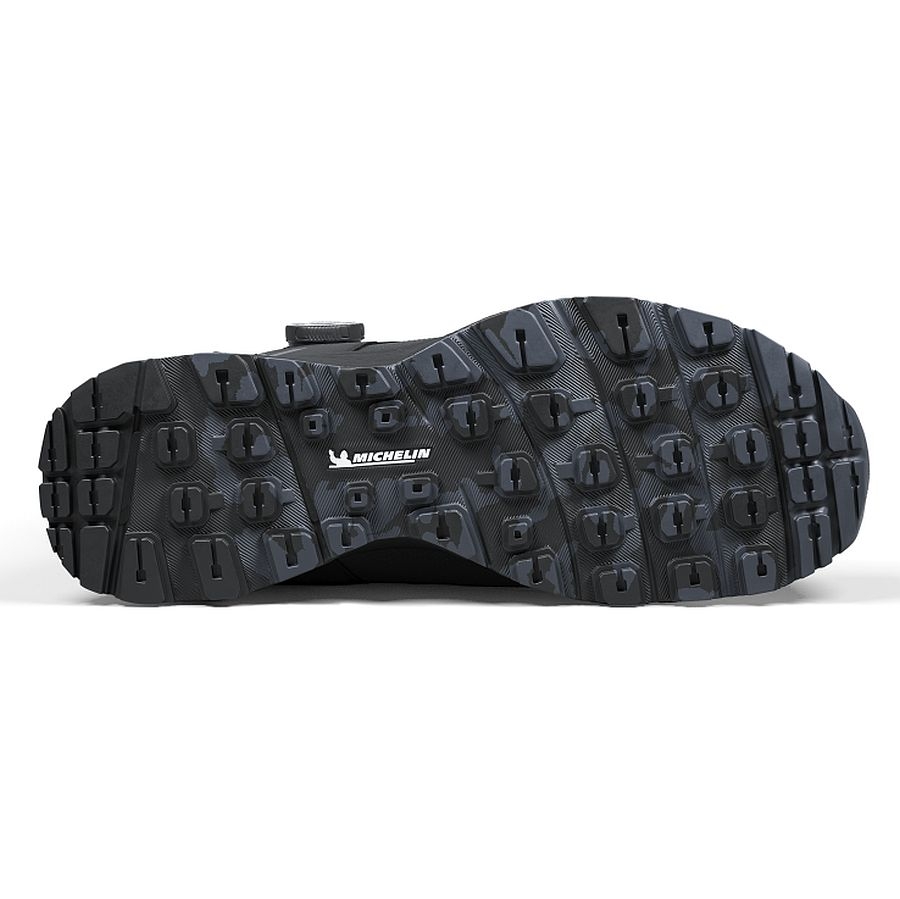 Die ETPU-Zwischensohle bietet eine hervorragende Dämpfung und Rückfederung, was für hohen Komfort sorgt, selbst bei längerem Tragen. Die teilweise recycelte OrthoLite®-Einlegesohle steigert den Komfort zusätzlich und trägt zur Nachhaltigkeit bei. Die extrem griffige Michelin®-Laufsohle maximiert den Bodenkontakt und bietet hervorragende Rutschfestigkeit, selbst auf öligen Oberflächen. Das BOA® Fit System gewährleistet eine präzise und individuelle Passform, die den ganzen Tag über bequem bleibt.