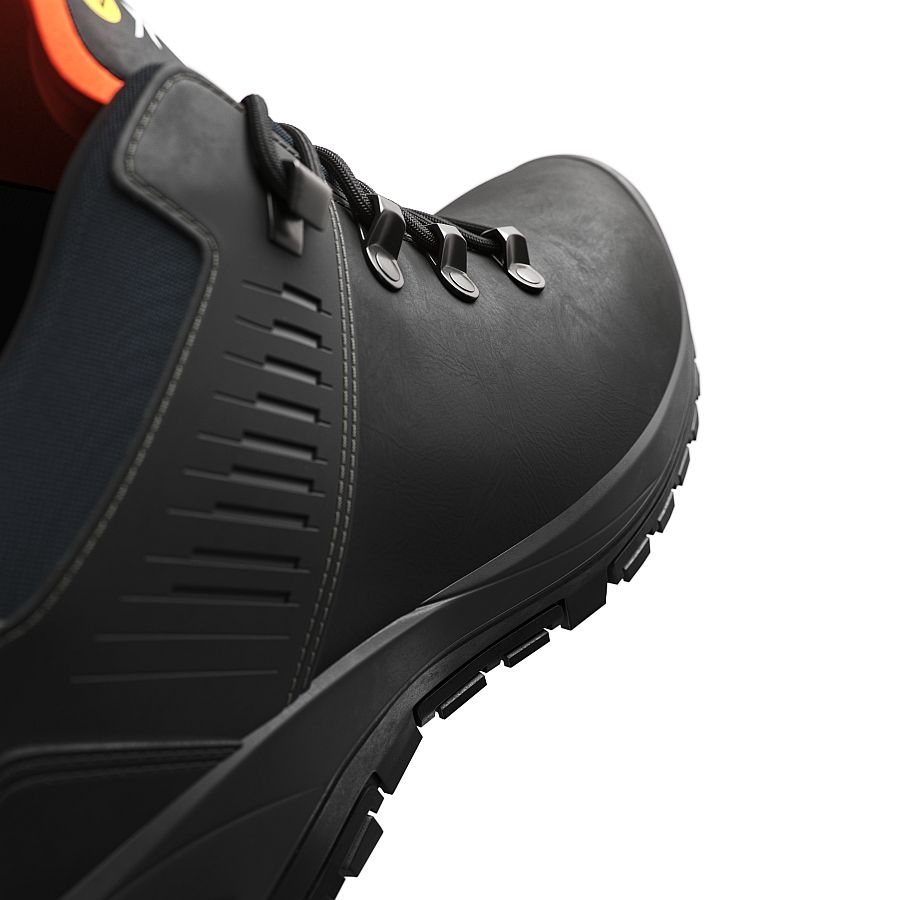 Die rutschfeste Gummisohle ist öl- und hitzebeständig und gibt Ihnen sicheren Halt auf unterschiedlichsten Untergründen – ein entscheidender Vorteil auf wechselnden Baustellen oder in Produktionshallen. Zusätzliche reflektierende Details erhöhen die Sichtbarkeit bei schlechten Lichtverhältnissen, und klassische Schnürsenkel sorgen für eine präzise, zuverlässige Fixierung des Fußes.