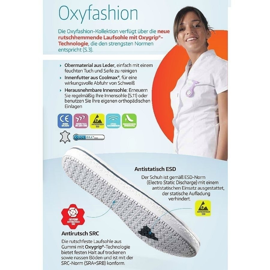 Mit dem Modell CLARK sehen Sie unbedingt trendy aus! Dieser Schnürschuh aus Leder unterstützt und schützt Ihren Fuß in vollem Maße. Die rutschhemmende Laufsohle mit Oxygrip-Technologie entspricht den strengsten Normen. Perfekt für Pflegefachkräfte und andere stehenden Berufe.