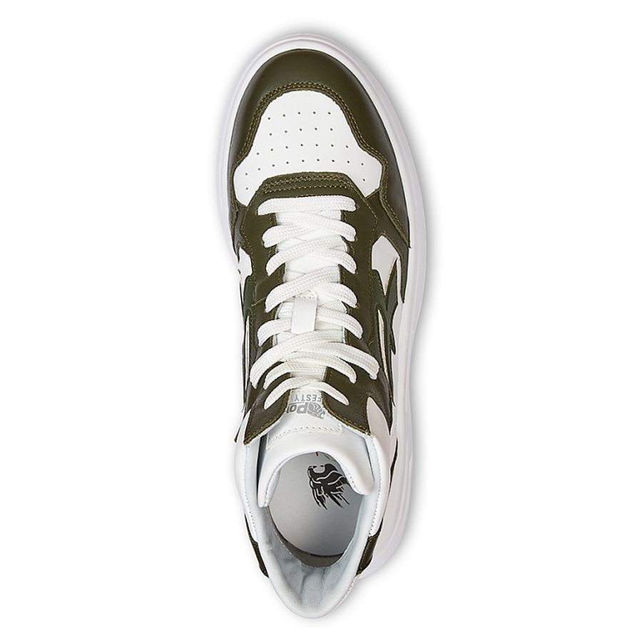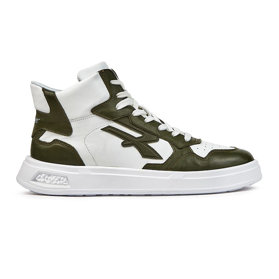- SCHAFT: Weiches, weißes Leder mit grünen Applikationen.