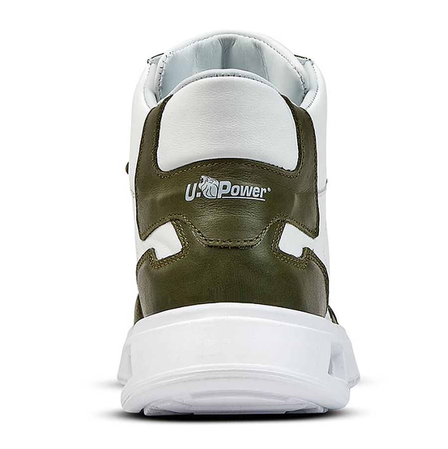 Entdecken Sie den U-POWER Exa Sneaker aus der Urban-Kollektion - Ihr perfekter Partner für Komfort und Stil im Arbeitsalltag. Mit seinem eleganten weißen Lederdesign, grünen Akzenten und atmungsaktiven Perforationen vereint der Exa Sneaker modernes Design mit höchster Funktionalität. Die revolutionäre Infinergy®-Sohlentechnologie bietet nicht nur rutschfesten Halt, sondern speichert über 55% Ihrer Energie und gibt diese bei jedem Schritt zurück, für ein unvergleichlich dynamisches Laufgefühl. Ideal für Berufstätige, die Wert auf Technologie, Design und Komfort legen.