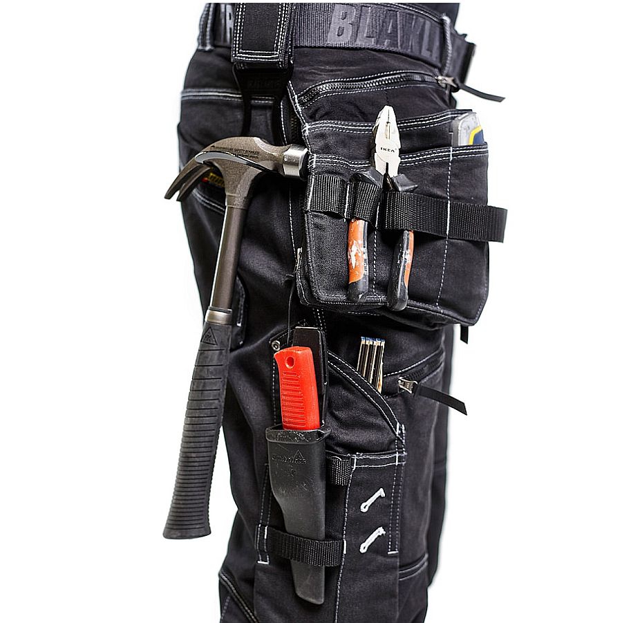 - CORDURA® 1000-verstärkte Zollstocktasche mit Messerhalter und Stifttasche.