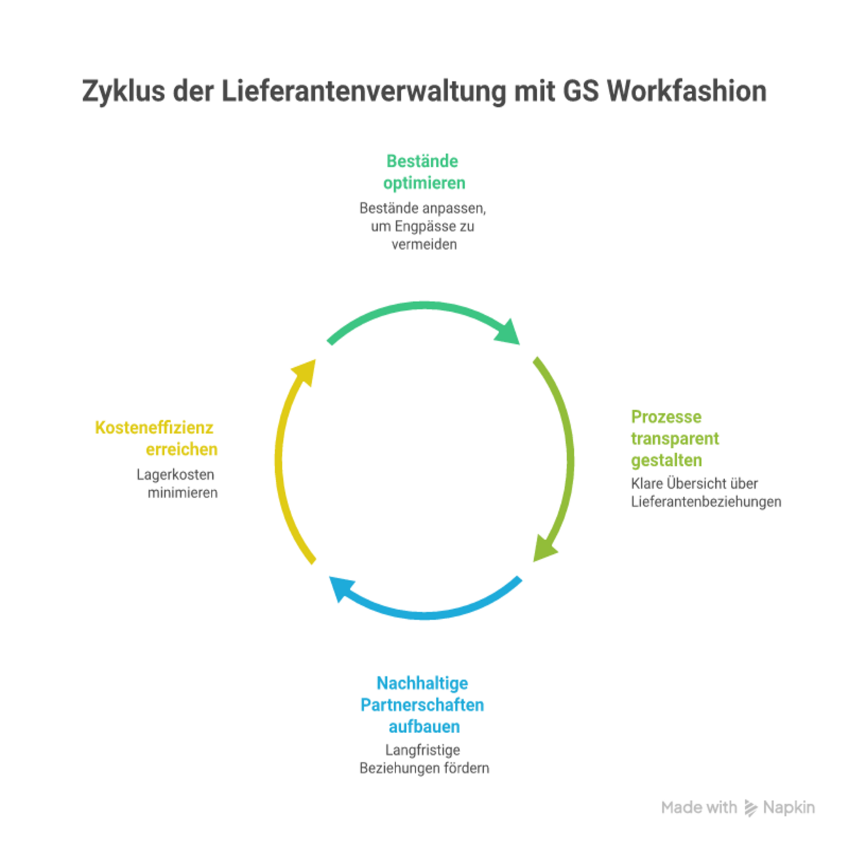 In der effizienten Verwaltung von Lieferanten und Beständen empfiehlt GS Workfashion die Implementierung von automatisierten Abläufen. Diese vereinfachen die Prozesse, schaffen Transparenz und gewährleisten, dass dein Arbeitsplatz mit hochwertiger Arbeitskleidung versorgt ist. Dabei sind nicht nur die schnellen Reaktionszeiten auf Bestelländerungen ein Vorteil, sondern auch die verbesserte Verwaltung der Lagerbestände, die auf Echtzeitdaten basiert.