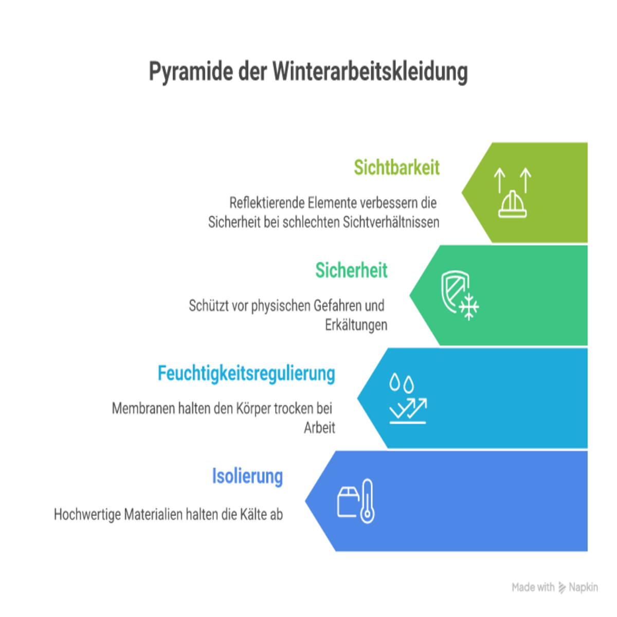 Jede gute Winterarbeitskleidung ist auch eine Form von Sicherheitskleidung. Eine korrekt isolierte Arbeitskleidung schützt nicht nur vor Kälte, sondern mindert ebenfalls die Gefahr von Arbeitsunfähigkeit durch Erkältungen oder andere kältebedingte Beeinträchtigungen.