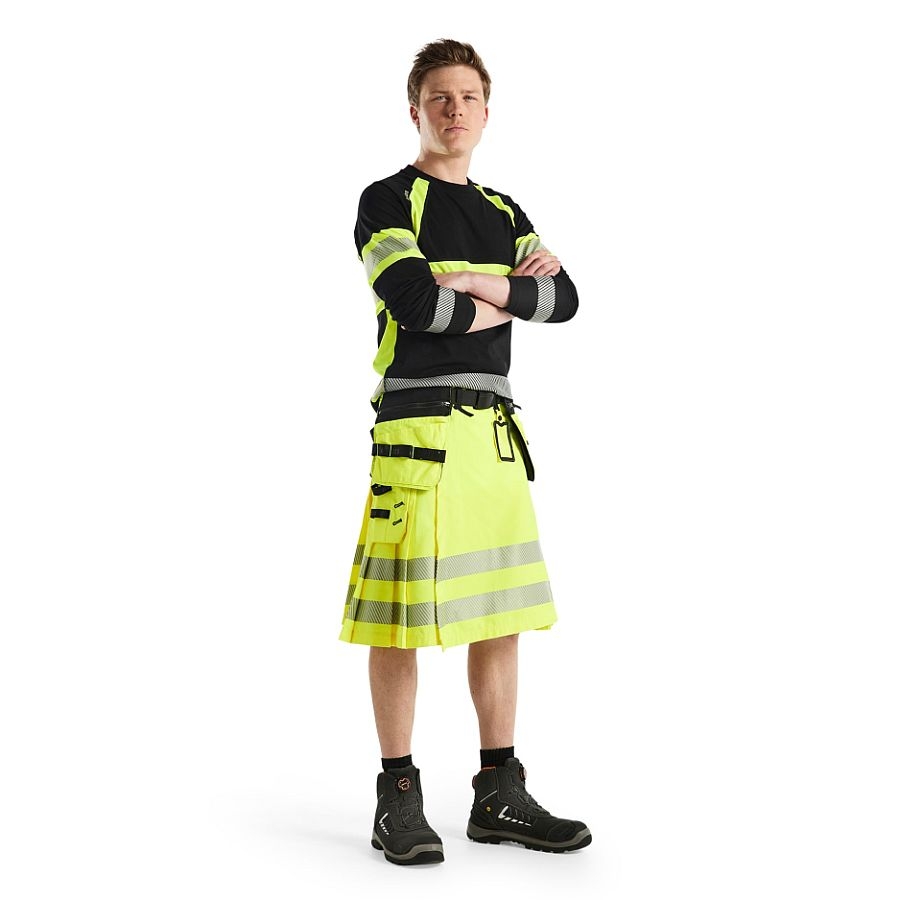 Der Kilt ist ein legendäres Symbol Schottlands. Blåkläder hat den Kilt übernommen und eine andere Art von Funktionsbekleidung für diejenigen entwickelt, die ein Zeichen setzen und den Komfort und die Belüftung eines Kilts genießen wollen. Dieser High Vis Kilt verfügt über CORDURA®-verstärkte Holstertaschen und Gesäßtaschen. Der außergewöhnlich bequeme Kilt ist aus hoch strapazierfähigem Ripstop-Stoff gefertigt. Das High Vis-Material und die segmentierten Reflexstreifen sorgen zusammen für eine bessere Sichtbarkeit. Innenfutter mit Camouflage Print und Schlaufen für einen Gürtel. Zertifiziert nach EN ISO 20471 Standard, Klasse 2.