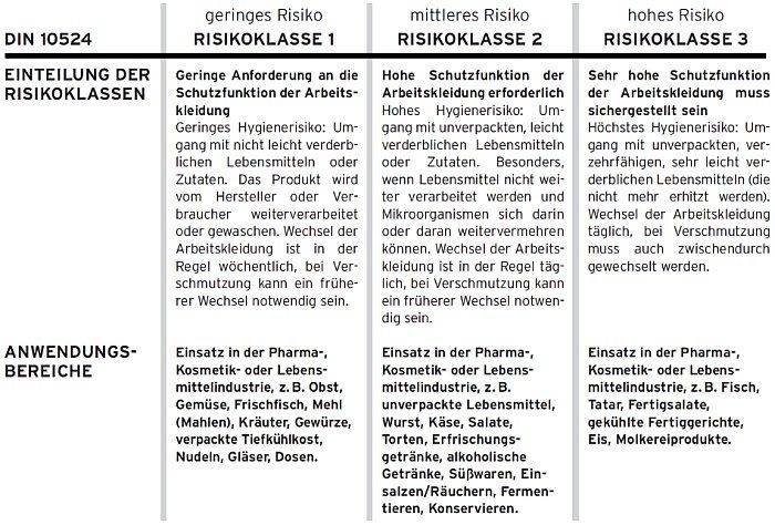 - Norm: Risikoklassen 1-3 nach DIN 10524:2004