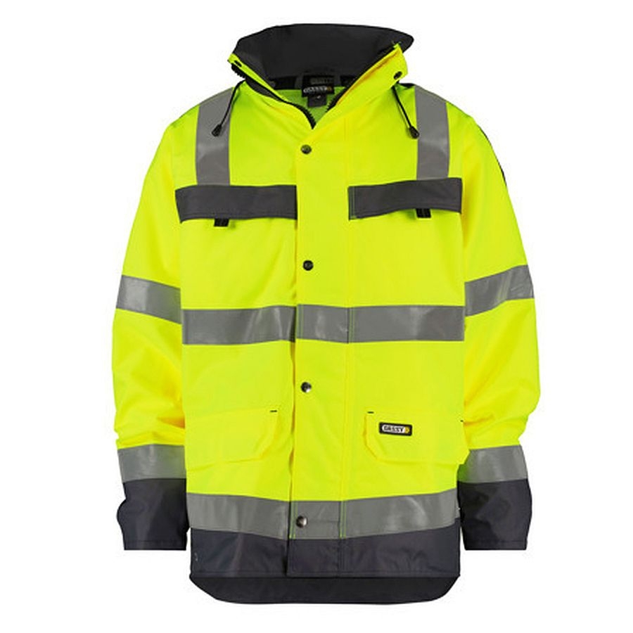 Der wasserdichte und atmungsaktive Regenparka Atlantis von DASSY Workwear schützt zuverlässig vor Schmuddelwetter und garantiert höchste Sichtbarkeit an gefährlichen Arbeitsorten. Das robuste Material ist dank einer Polyurethan-Beschichtung bis 2000mm wasserdicht und schützt so zuverlässig vor Nässe.