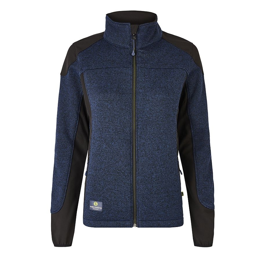 Die neue Damen Strickfleecejacke 80510 von Hans Schäfer Workwear bietet Komfort durch innen wärmeregulierendes Fleece und dehnbares Strickmaterial an der Außenseite. Besatzelemente sind bereit für Rucksäcke oder Taschen. Seiten- und Armtaschen nehmen alles wichtige sicher auf.