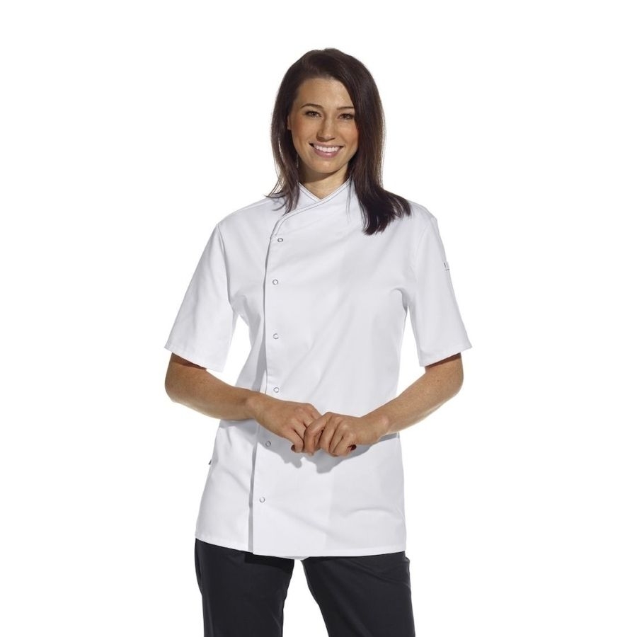 Leichte Leiber Kochjacke aus einem luftigen Mischgewebe. Durch die Verwendung eines sehr leichten und luftigen Materials garantiert die Leiber Kochjacke 12/2542 einen hervorragenden Tragekomfort. Dank der kontrastfarbenen Absteppungen erhält die Leiber Kochjacke ein dezentes, edles Design.