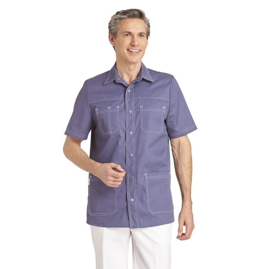 Der neue Leiber Herrenkasack 12/2590FB in modischem Jeans-Style mit Druckknopfleiste und Kontrastnähten bringt Schwung in ihren Arbeitsalltag und unterstreicht Ihren individuellen Style.