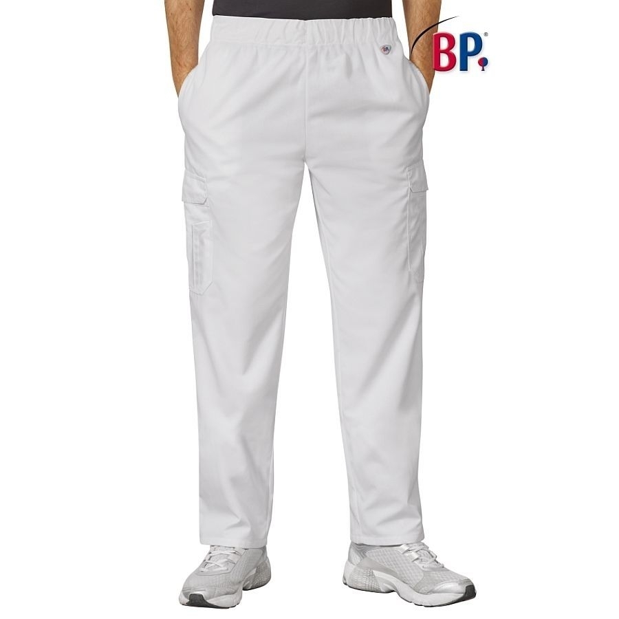 Praktische Berufshose aus dem robusten BP Mischgewebe. Mit geräumigen Schenkeltaschen und einem komfortablen Gummizug-Bund für maximale Bewegungsfreiheit. Für Damen und Herren geeignet, in den Farben weiss, dunkelblau und beige.