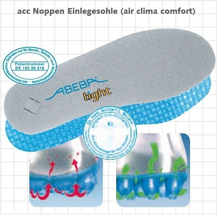 - Abeba TPU Laufsohle mit Spezialprofil und SRC Rutschhemmung nach EN ISO 20347:2012.