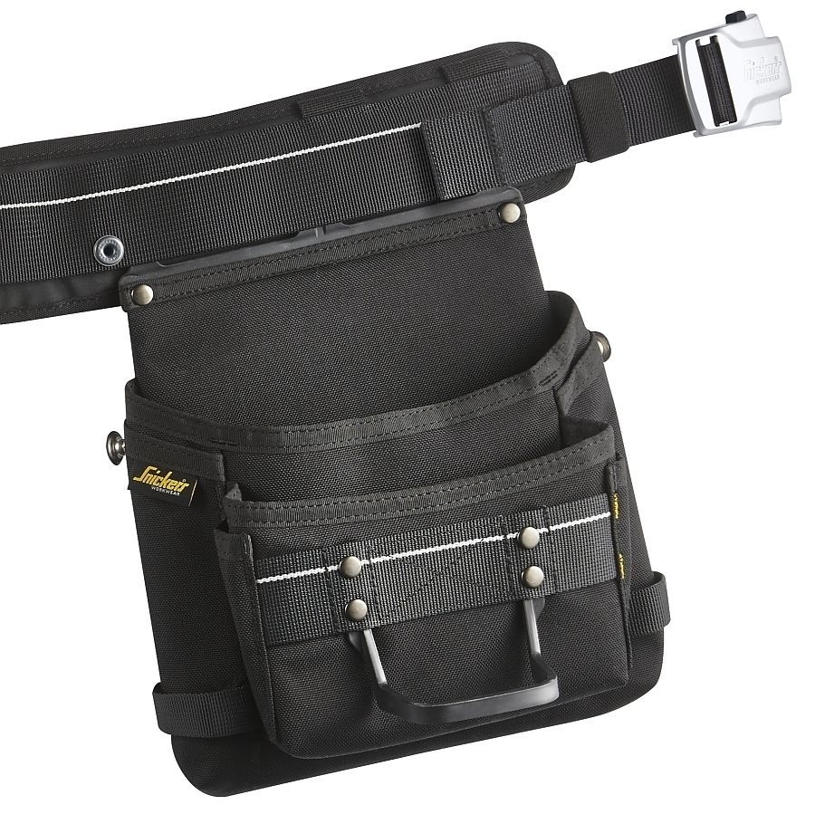 - Zwei Nagel- & Schraubentaschen im angewinkelten Design mit großen Öffnungen für einfache Erreichbarkeit.