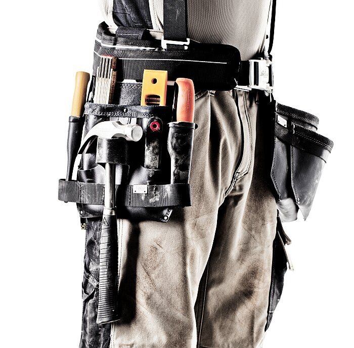 Für Zimmerer, Schreiner und Bauhandwerker entworfene Werkzeugtasche aus echtem Leder. Die extrem robuste Werkzeugtasche bietet Platz für die wichtigsten Werkzeuge und wurde speziell für die Snickers Werkzeuggürtel 9790 und 9791 entworfen.
